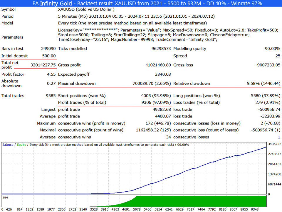 Backtest results with EA Infinity Gold