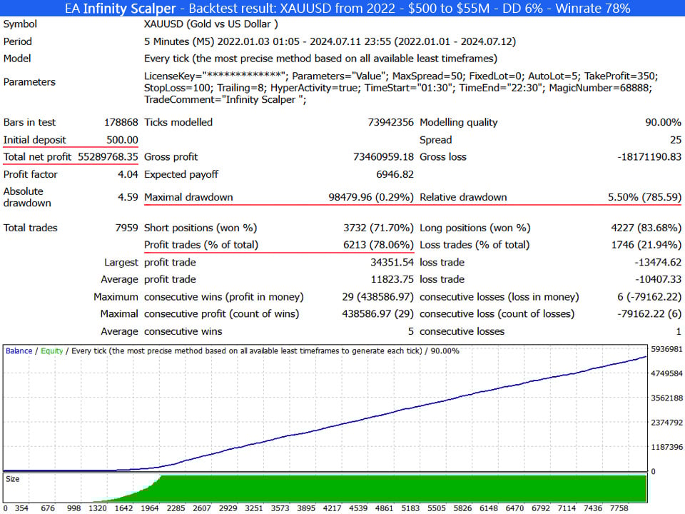 Backtest results with EA Infinity Scalper with XAUUSD