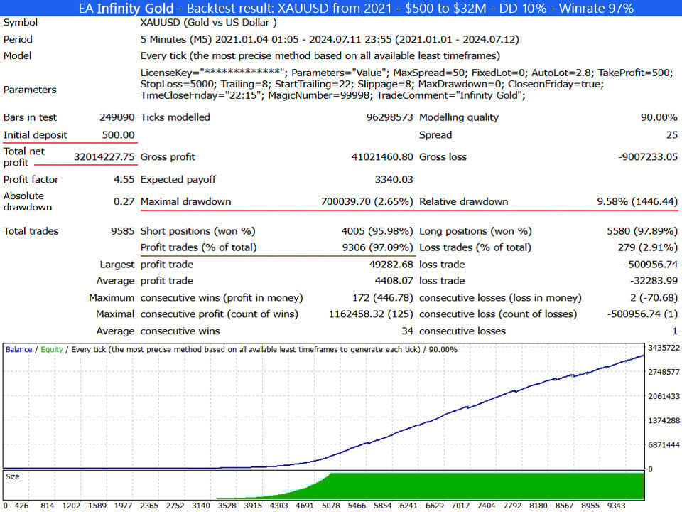 Backtest results with EA Infinity Gold